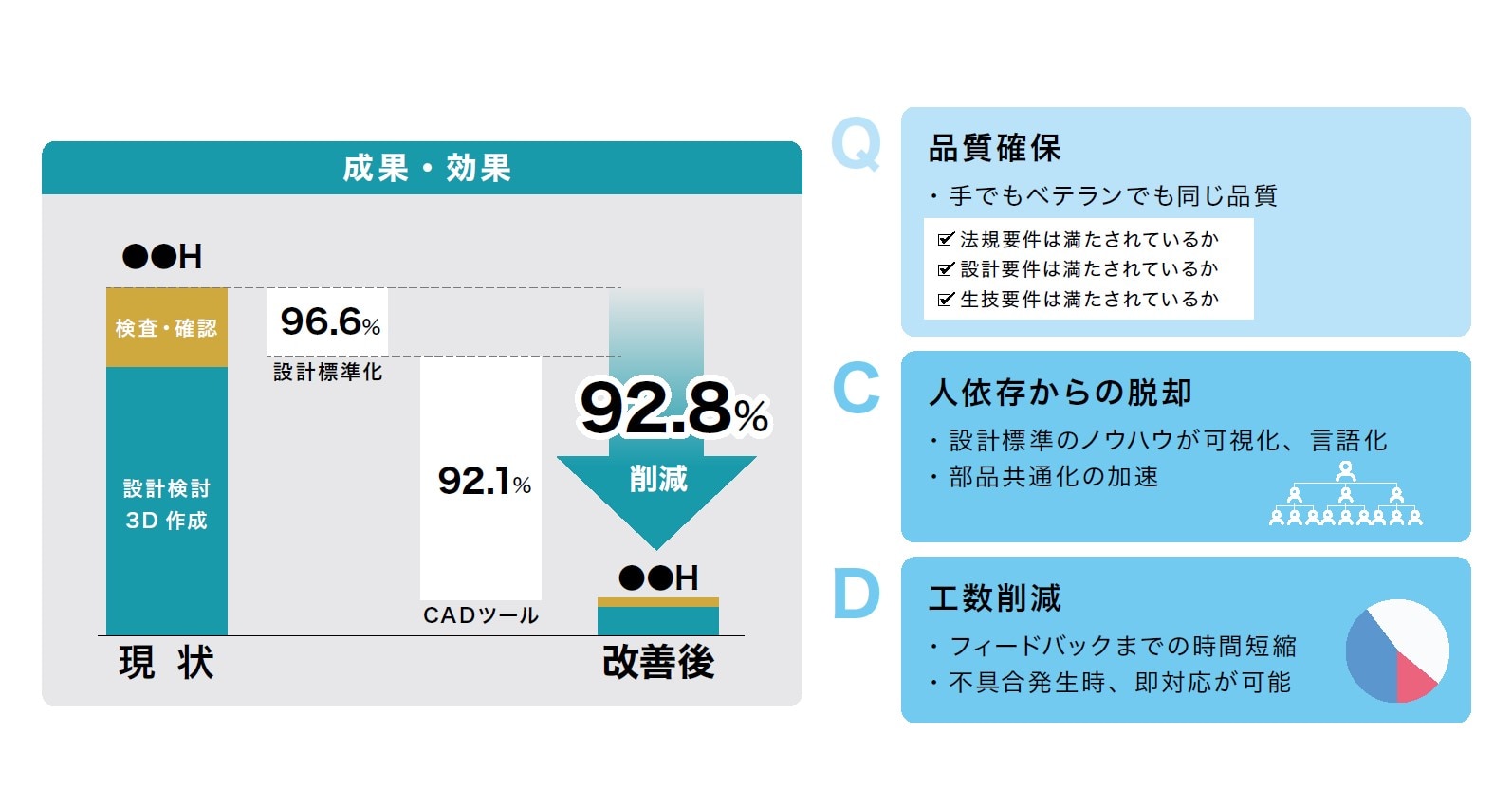 本活動を通じて、これまで属人化していたノウハウの見える化やその標準化が設計品質の担保に不可欠であることを実感し、メンバー全員の意識や風土にも変化をもたらしました。