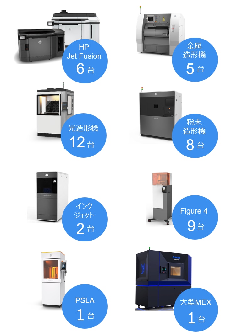 | 材料 | 光造形、粉末造形、Jet Fusionなど |