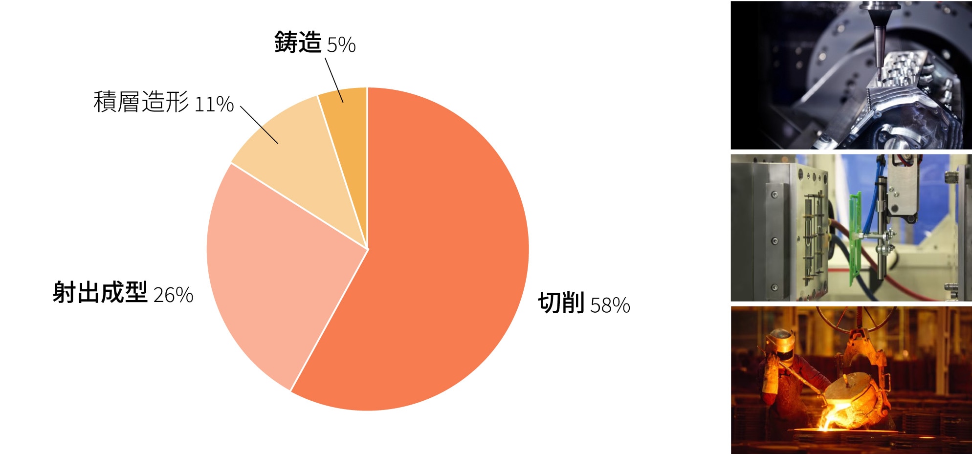 切削加工などの従来工法では高コストかつ長納期になりがちな、複雑形状の少量生産に最適